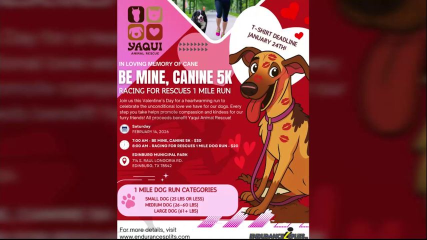 The Be Mine Canine 5K is scheduled for Saturday, February 14 at the Edinburg Municipal Park beginning at 7 a.m.