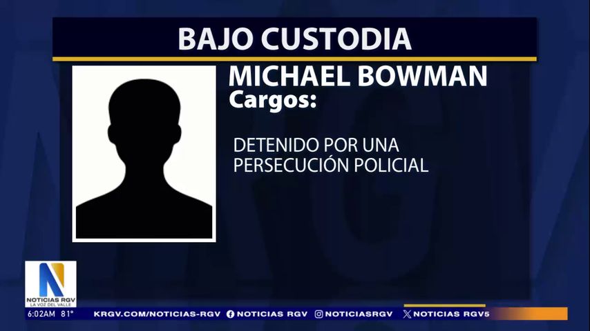 Michael Bowman, de 30 años, se encuentra tras las rejas en el Condado Hidalgo después de una persecucion policial en San Carlos.