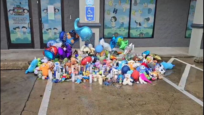 Un monumento conmemorativo se encuentra frente a la entrada del preescolar Learning Club, ubicado en la cuadra 3900 de Paredes Line Road.