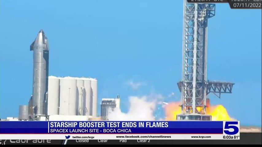 Booster engine testing at SpaceX's Boca Chica launch site ended in flames Monday afternoon.