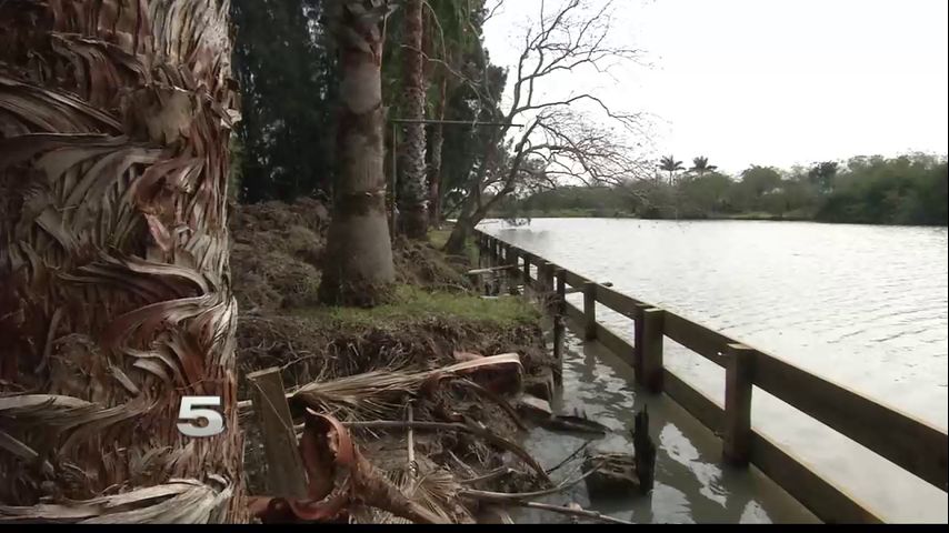 She says if it doesn’t get fixed, the land and palm trees could start slipping in to the water.