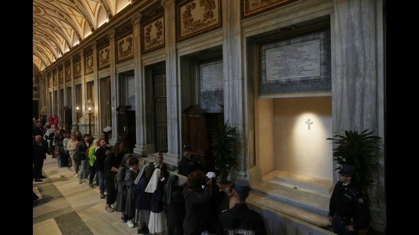 VATICAN CITY (AP) — Roman Catholic faithful began visiting the tomb of Pope Francis on Sunday, filing past the simple white tomb in St. Mary Major Basilica a day after he was bade farewell by the powerful of the world and a crowd of hundreds of thousands.