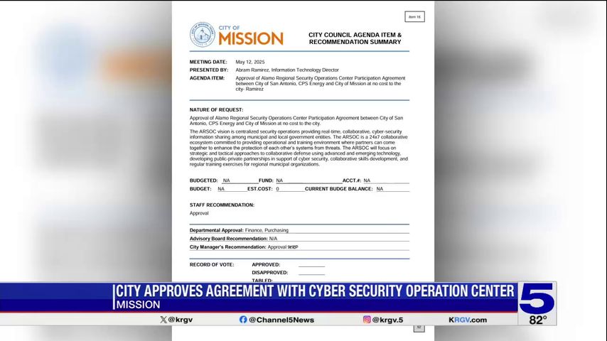 In a statement from Mission city leaders, they said the agreement is "an effort to improve our cybersecurity posture."