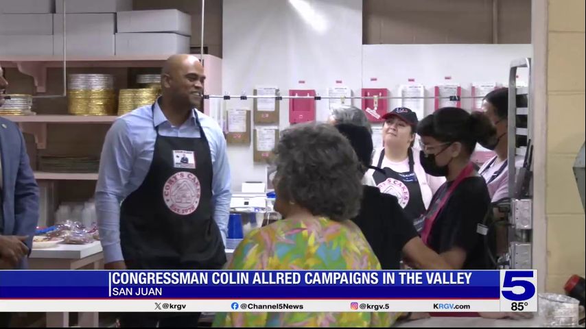 Congressman Colin Allred, who's looking to unseat Senator Ted Cruz in November, stopped by a San Juan bakery during a Wednesday visit.