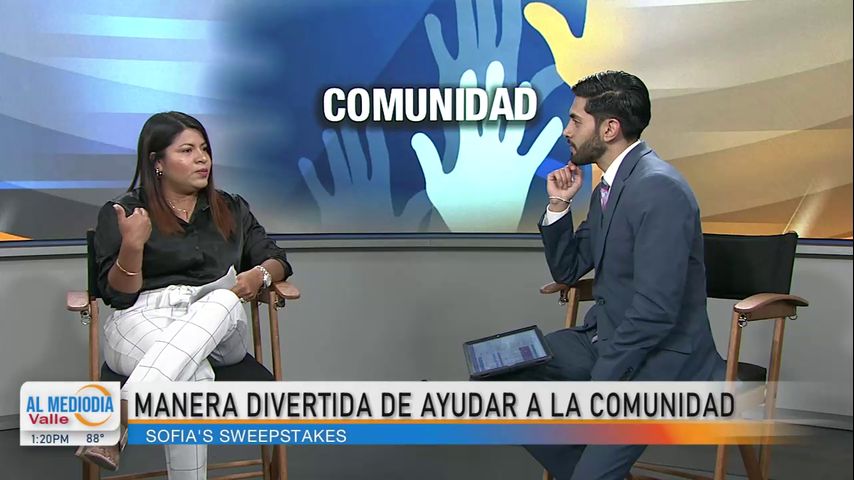 En Comunidad, Claudia Stallings, propietaria de Sofia's Sweepstakes, visita nuestros estudios para informar acerca de la organización de caridad, la cual ayuda a otras organizaciones locales a base de sorteos. Una manera de hacer divertida la acción de dar o ayudar.