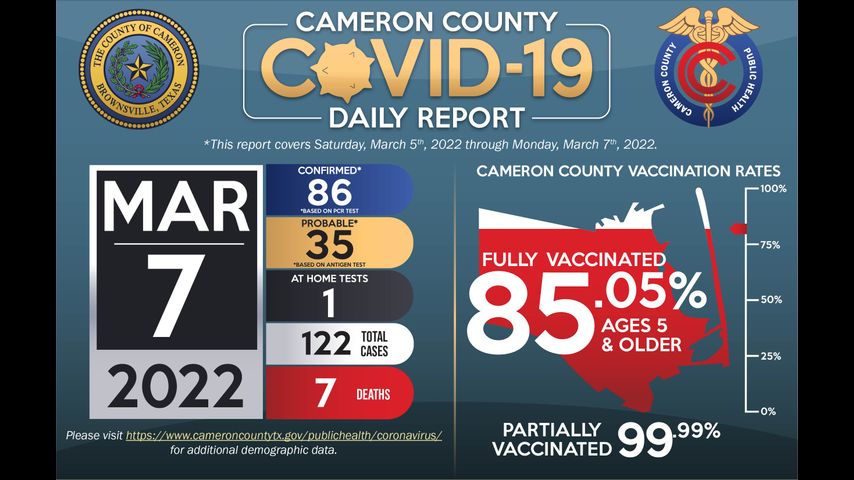 El condado de Cameron informó el lunes siete muertes relacionadas con el coronavirus y 122 casos positivos de COVID-19.