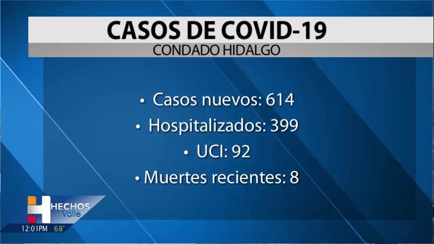 El Condado Hidalgo reportó el martes ocho muertes relacionadas con el coronavirus y 614 casos positivos de COVID-19, según un informe del Departamento de Salud y Servicios Humanos del Condado Hidalgo.