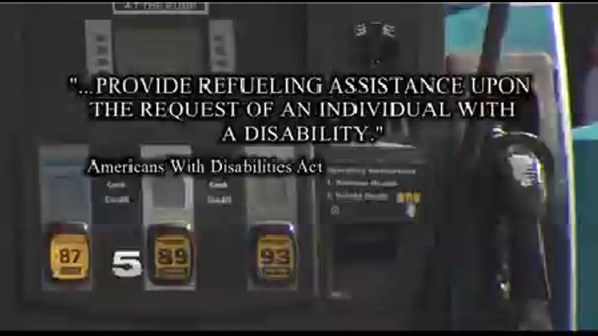 Under the Americans with Disabilities Act, self-service gas stations with more than one employee present are required to assist patrons with disabilities.