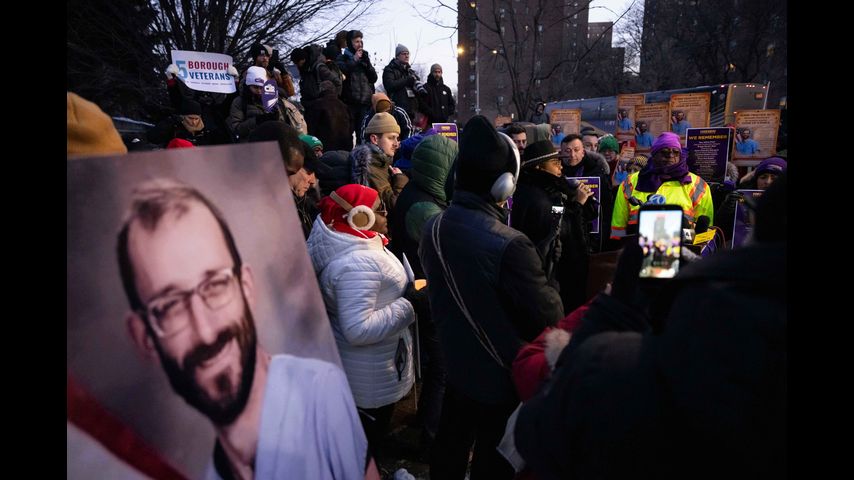 A photo of Alex Pretti is displayed during a vigil for Alex Pretti by nurses and their supporters outside VA NY Harbor Healthcare System, Thursday, Jan. 29, 2026, in New York. (AP Photo/Yuki Iwamura)