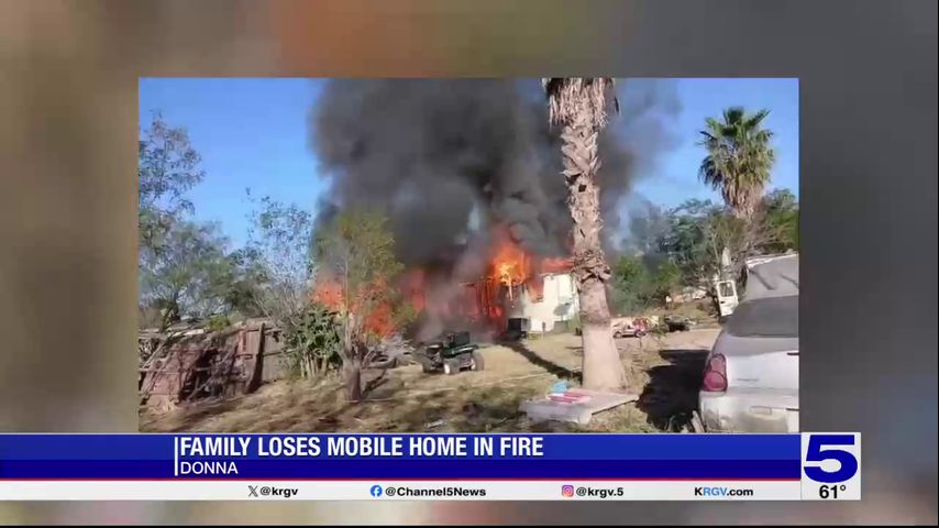 Tears ran down Mariana Ortiz's face as she watched her mobile home located in the 9400 block of Nueces Circle in Donna get swallowed by orange flames and black smoke.