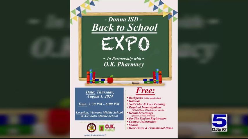 Donna ISD will be holding a back-to-school expo on Thursday at 3:30 pm. at Veterans Middle School and A.P. Solis Middle School.