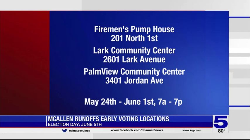 Early voting to decide McAllen's mayor and commissioners for District 1, 3 and 6 in the city's runoff election starts Monday, May 24.