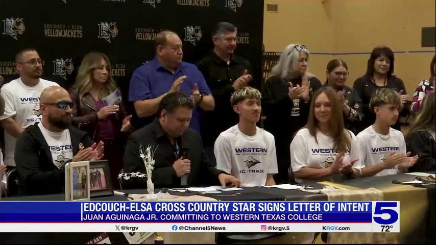 Edcouch-Elsa cross country star Juan Aguinaga Jr. signed to run at Western Texas College on Wednesday afternoon.