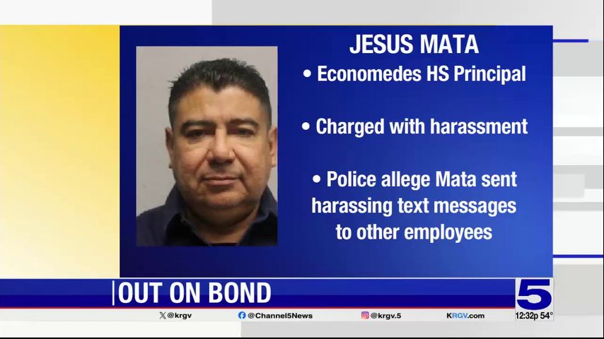 As previously reported, Johnny Economedes High School Principal Jesus Ramon Mata was arrested on a harassment charge on Monday. He was released on a $10,000 bond that same day.