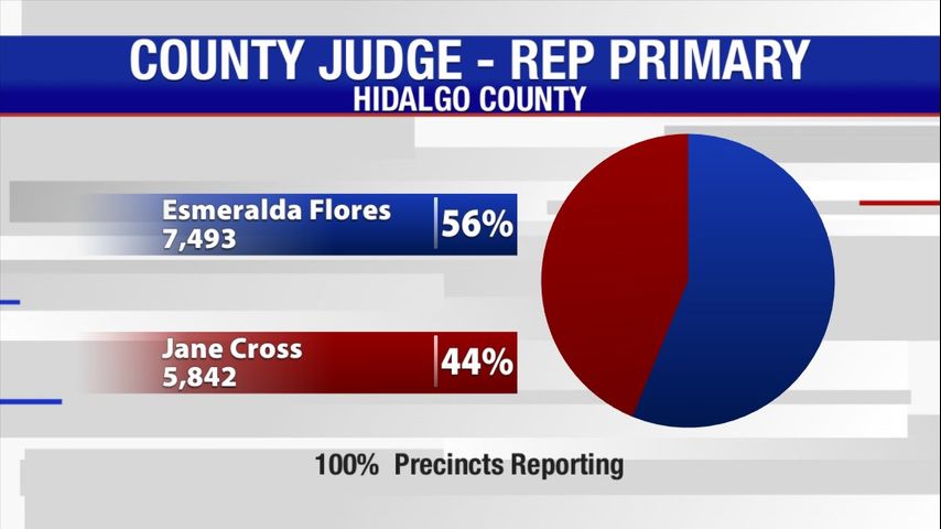 Flores will face the winner of the Democratic Hidalgo County judge race. Incumbent Richard Cortez leads with 20,741 votes, or 50 percent of the vote.