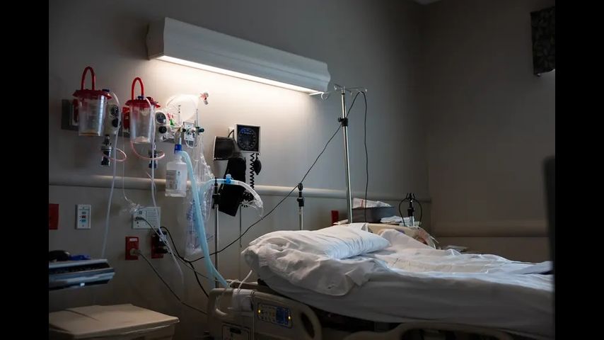 Medical equipment lines the walls of a Central Texas hospital room on March 13, 2024. Credit: Maria Crane for The Texas Tribune