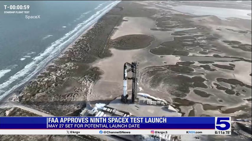 The city of Brownsville announced Tuesday, May 27, 2025, as a potential day of SpaceX's next launch, but a time has not yet been determined.