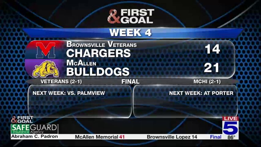 | Brownsville Veterans | 14 | McAllen High | 21 | 7 p.m. |