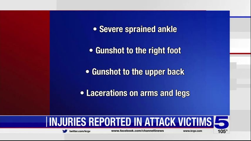 The report states one of the victims, a lawful permanent U.S. resident, had a gunshot wound to the right leg and a second victim, a Mexican citizen, had a hand laceration.