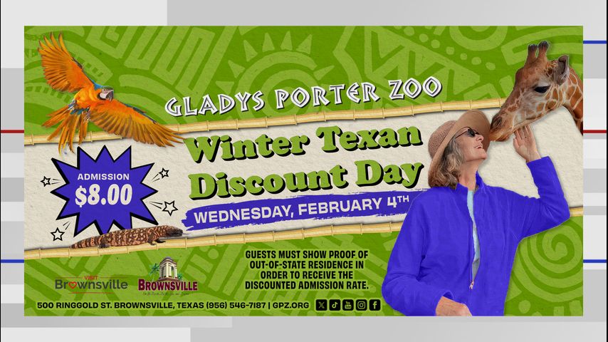 The Gladys Porter Zoo will host its annual Winter Texan Discount Day on Wednesday, Feb. 4, 2026, according to a news release.