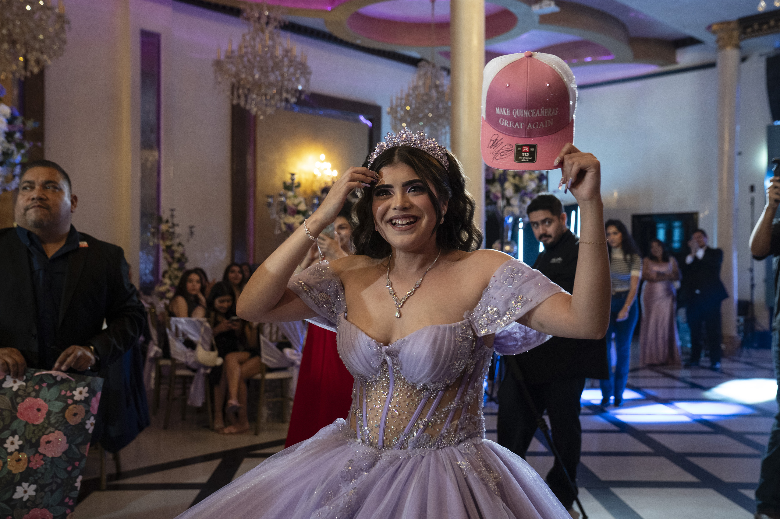 At the quinceañera, Pulido gave Jimena Sáenz a pink hat labeled “Make Quinceañeras Great Again” and autographed by the Tejano singer.