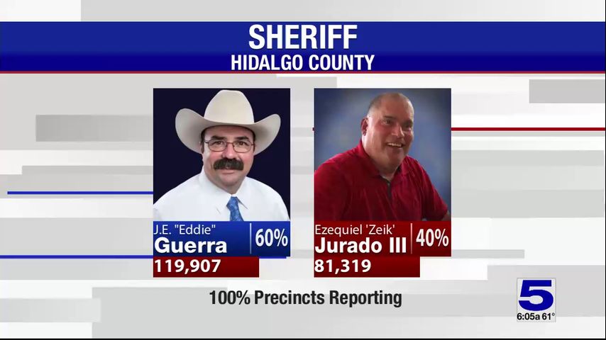 Early voting results show incumbent J.E. "Eddie" Guerra in the leading in the race for Hidalgo County Sheriff, according to unofficial early voting results.