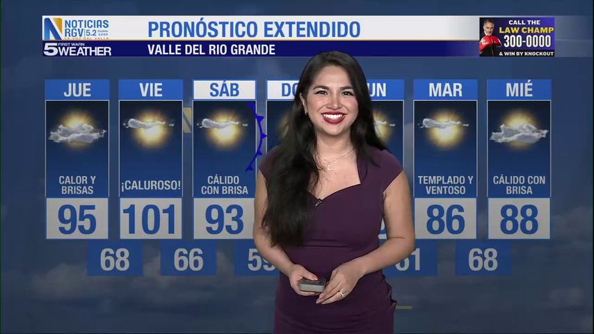 Jueves 13 de Marzo: Cálido con brisas, temperaturas en los 95s