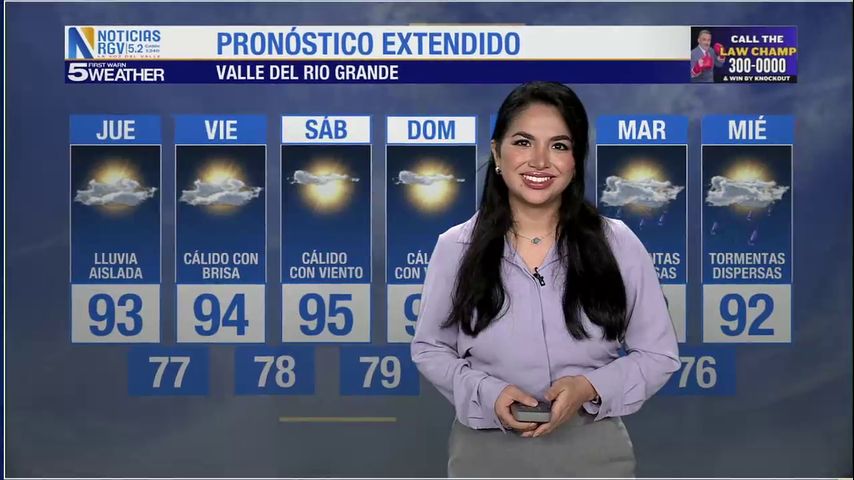 Jueves 22 de Mayo: Lluvias aisladas, temperaturas en los 93s