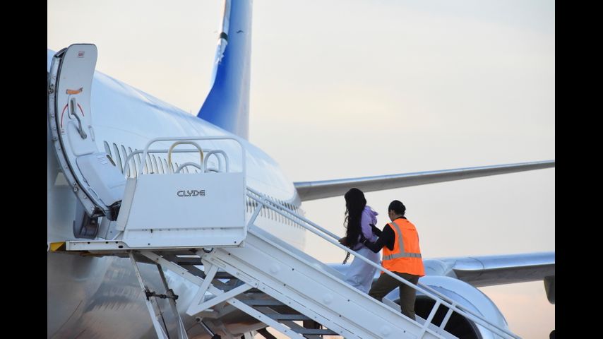 ARCHIVO - Migrantes venezolanos abordan un avión para ser deportados a su país, en Harlingen, Texas, el miércoles 18 de octubre de 2023. (AP Foto/Valerie González, Archivo)