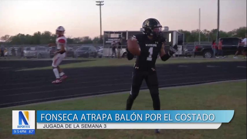 La jugada de la semana tres de futbol americano escolar premia al equipo de Santa Rosa, donde el receptor Riley Fonseca logró una atrapada espectacular por el costado izquierdo fuera de la banda.