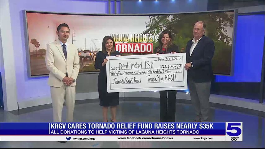 Thanks to the generous viewers of Channel 5 News, the newly launched KRGVCares Tornado Relief Fund was able to raise $34,655.29 for Point Isabel ISD.