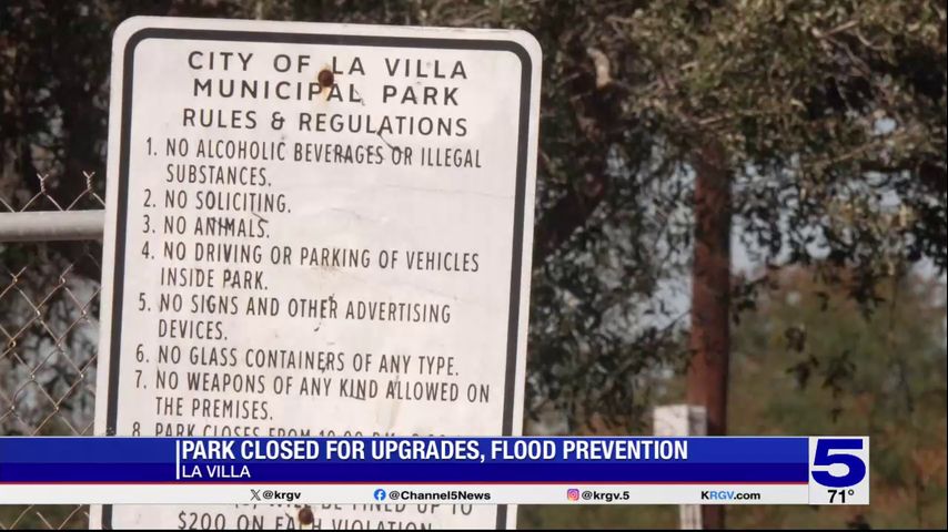 The closure at La Villa Municipal Park started on Wednesday as crews laid down 60 loads of dirt to level out spots around the park that tend to flood.