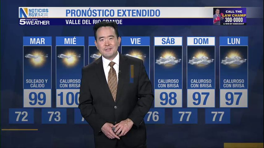 Lunes 12 de Mayo: Noche fresca, temperaturas en los 72s