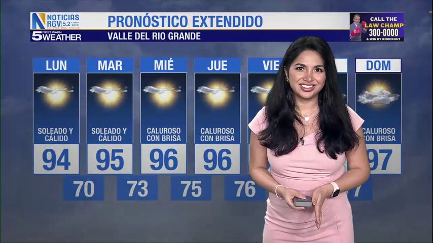 Lunes 12 de Mayo: Soleado y cálido, temperaturas en los 94s