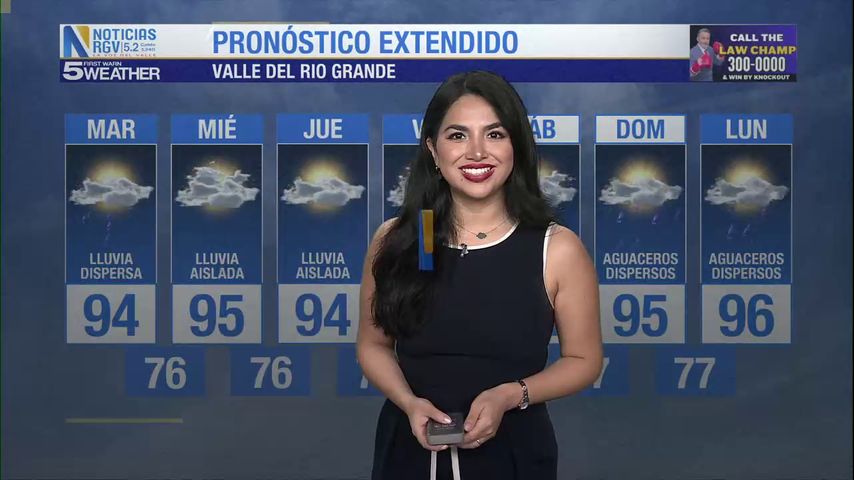 Martes 24 de Junio: Cálido con lluvia dispersa, temperaturas en los 94s