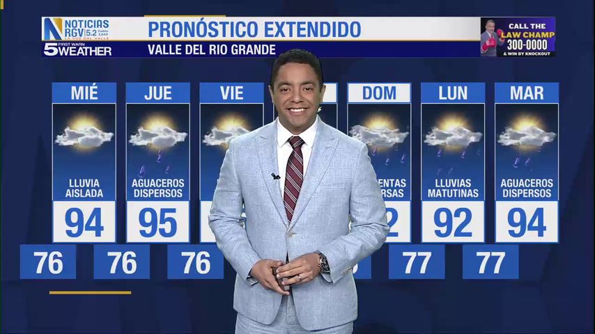 Martes 24 de Junio: Lluvia aislada con temperaturas en los 94s