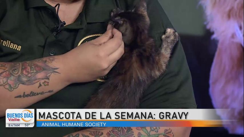 Maribel Orellano de Weslaco Animal Care Services, visita nuestros estudios para presentarnos a la mascota de la semana, el gatito Gravy.