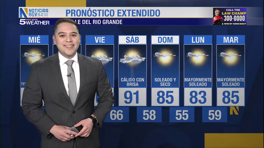 Miércoles 12 de Marzo: Día cálido, temperaturas en los 92s