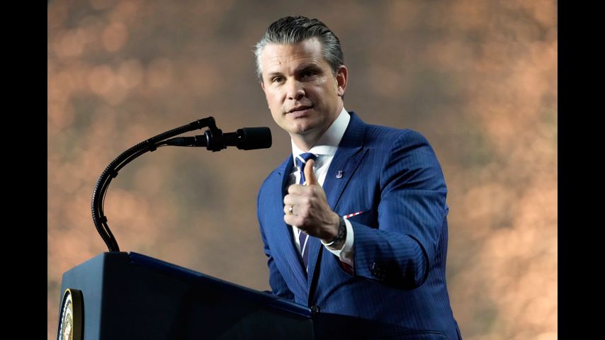 U.S. Secretary of Defense Pete Hegseth speaks at the Al Udeid Air Base, Thursday, May 15, 2025, in Doha, Qatar. (AP Photo/Alex Brandon)