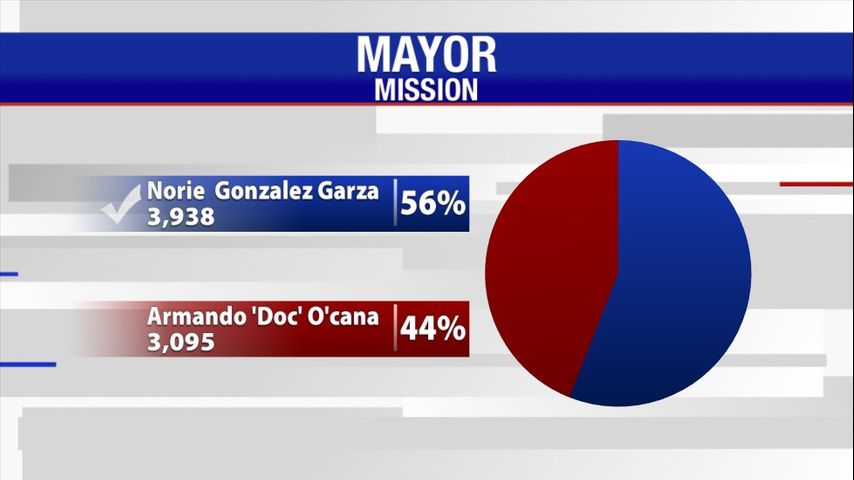 Former city councilwoman Norie Gonzalez Garza received 56%, or 3,938 votes, in the race for Mission mayor. Incumbent Armando 'Doc' O'caña received 3,095, or 44% of the vote.
