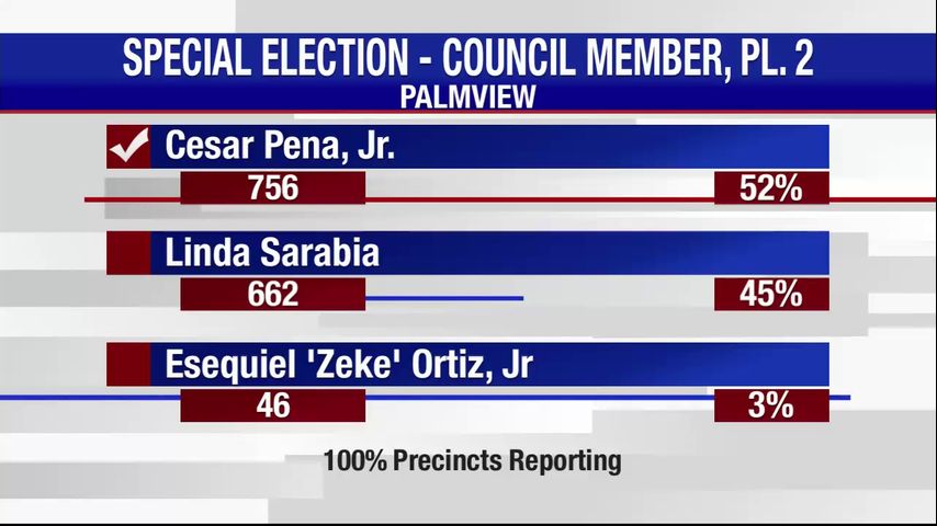Palmview residents voted for Cesar Peña Jr. for council member place 2. He received 52 percent of the votes with a total of 756 votes.