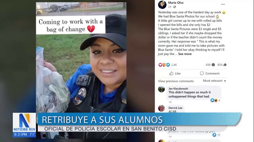 Esta semana Olivarez decidió retribuir a los estudiantes que protege en el Distrito Escolar Independiente de San Benito y pagó para que más de 20 niños se tomaran fotos con el 'Santa Azul' de la policía del campus.