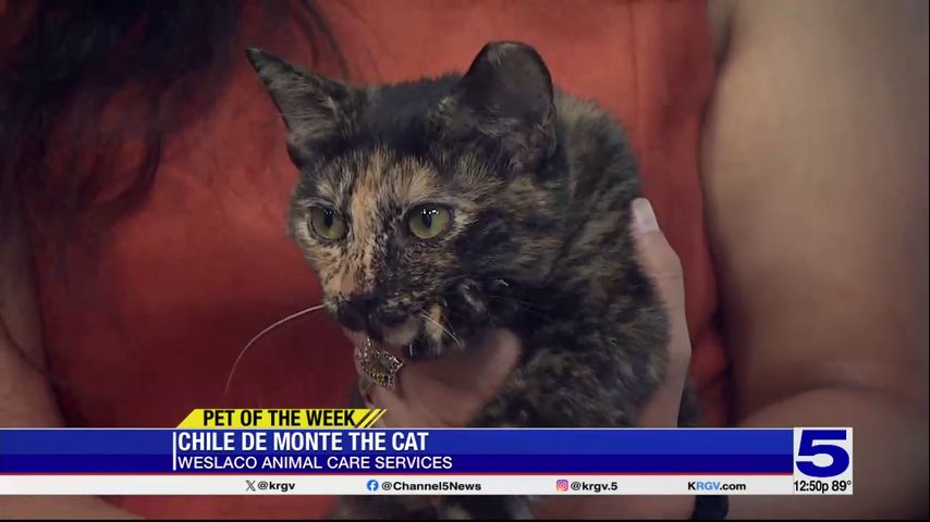 Editor's Note: A graphic in the video says the cat is from Weslaco Animal Care Services, but the cat is actually available at the RGV Humane Society.