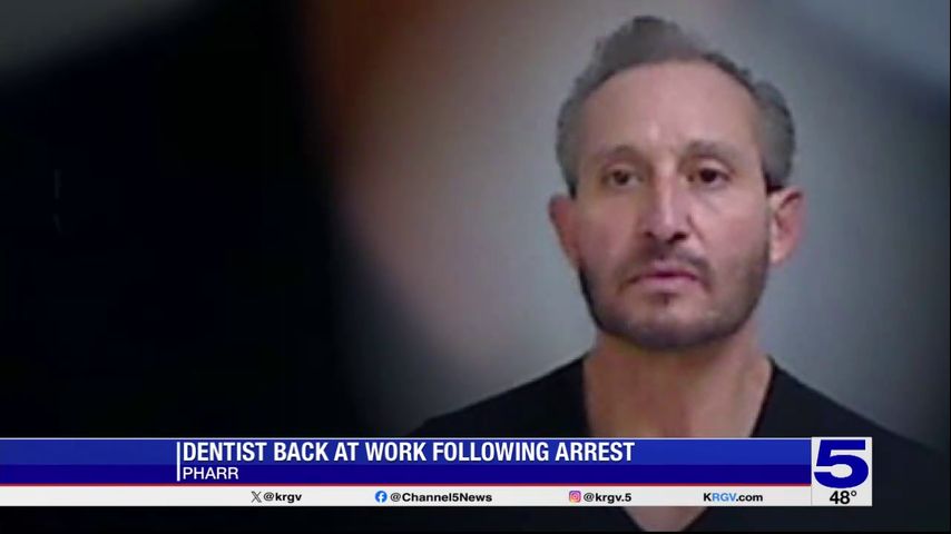A Pharr dentist who turned himself in to police is back at work, his attorney said.