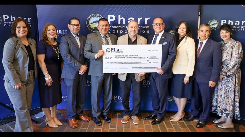 The Pharr Economic Development Corporation contributed $189,000 to the Region One Education Service Center to support 45 aspiring teachers who work or live in Pharr.