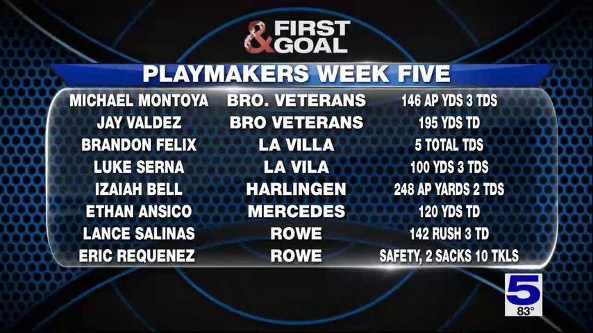 Channel 5 Sports is recognizing the top Valley high school football players from last week's games.