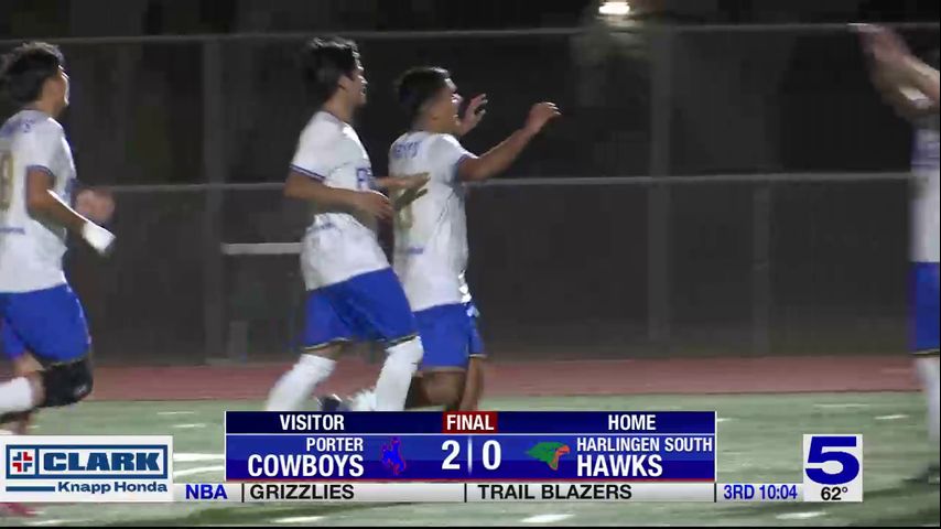 Porter remains undefeated in district play after taking down Harlingen South 2-0 1 month 2 days 17 hours ago Friday, February 06 2026 Feb 6, 2026 February 06, 2026 10:50 PM February 06, 2026 in Sports Share: Highlights from high school soccer Brownsville Porter vs. Harlingen South. Report a Typo