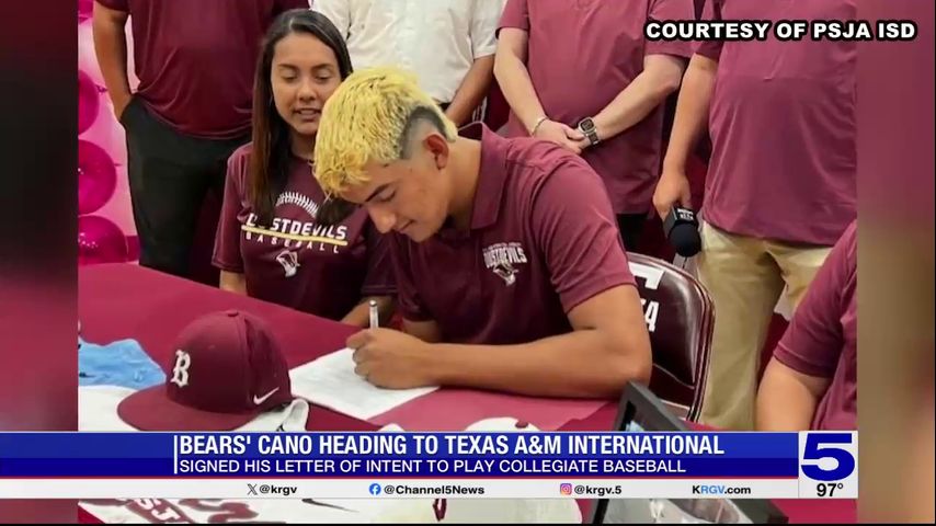 SAN JUAN, TEXAS -- PSJA High Senior Vinny Cano signed his letter of intent to play baseball at Texas A&M International University yesterday. Watch video above for more: