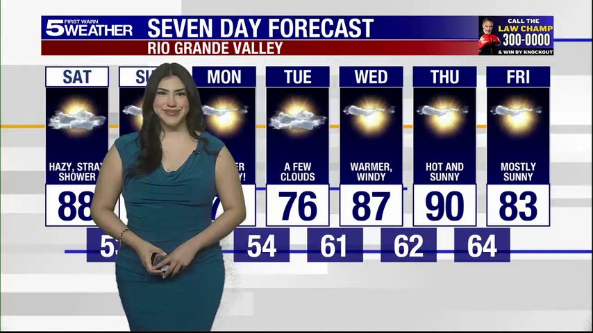 Saturday, Feb. 21, 2026: Hazy with a stray shower, temps in the 80s