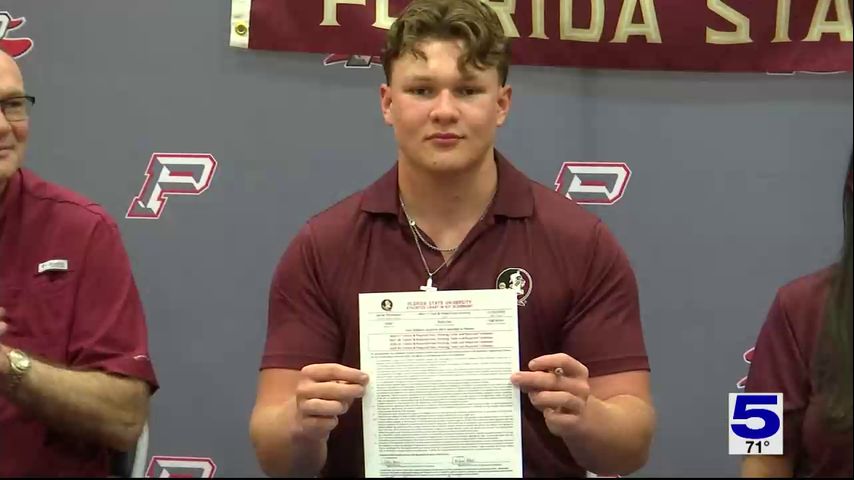 Sharyland Pioneer star athlete Derek Thompson is taking his talents as a shot put and discus thrower to Tallahassee after signing with Florida State on Wednesday afternoon.